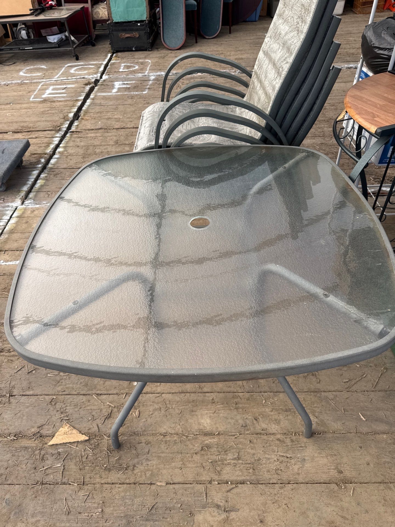 NICE PATIO SET GLASS TABLE AND CHAIRS