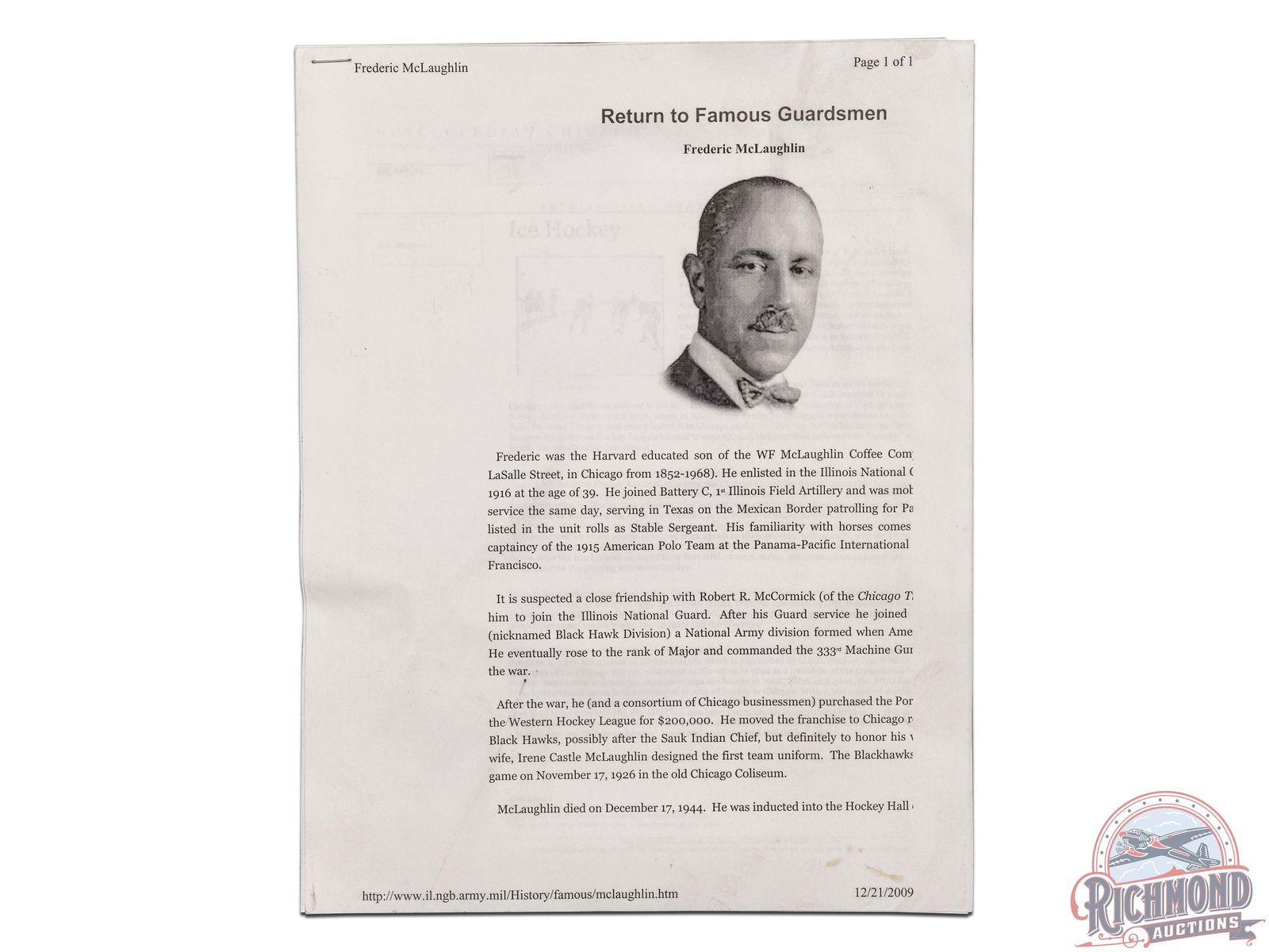 1. Richmond has put forth reasonable effort in preparing the catalog(s) used to depict Items listed for each auction (each, a "Catalog") in order to provide reasonably accurate descriptions of all Items. All Items are sold "as-is" and it is Bidder's responsibility to determine the exact condition or authenticity of each item. Richmond's description of the Item(s) represents Richmond's best effort to describe the Item(s) based on information provided to it by the owner of the Item(s) and/or otherwise made available to Richmond. Bidder acknowledges and agrees that gross omissions regarding the functionality or authenticity of Items, failures to cite major missing parts and/or restrictions with regard to usage or other inaccuracies may occur. ABSOLUTELY NO REFUNDS OR EXCHANGES WILL BE OFFERED, BIDDER is participating in the auction, bidding on and/or purchasing the Item(s) at its own risk.