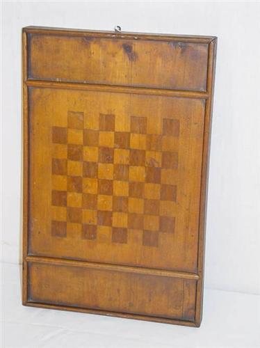 NICE SMALL SIZED LATE 19TH CENT. PINE INLAID SINGLE SIDED GAMEBOARD W/ TRAYS - IMPERFECTIONS;