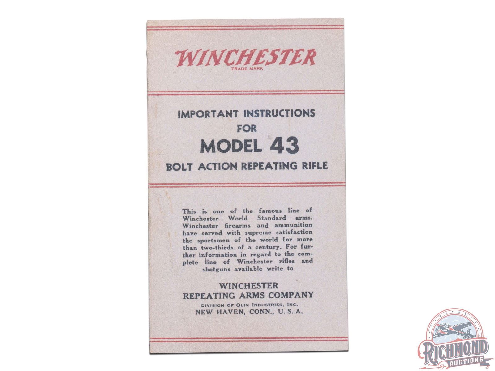 2. All firearms sold are "collectible" items, therefore Richmond does not test the safety or warrant functionality of these firearms. All firearm purchases should be examined by a certified gunsmith prior to shooting.