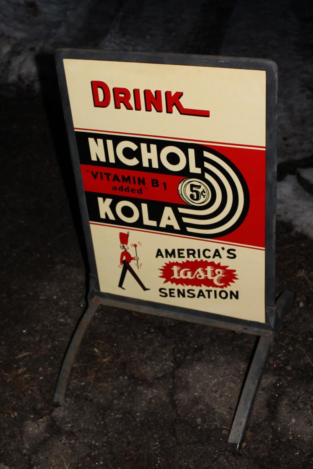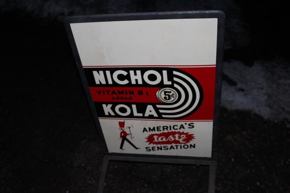 TIN SIGNS, IRON FRAME. 2 1 SIDED SIGNS IN THE FRAME. GREAT CONDITION, LIGHT WEAR. APPROXIMATE SHIPPING COST $65 TO $150. THIS ITEM IS GUARANTEED TO BE OLD AND ORIGINAL