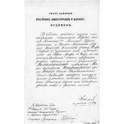 <b>353. NICHOLAS II </b>(1868 - 1918)<b> </b>Czar of Russia forced by the Revolution of 1905 to create a Russian parliament and approve a constitution, abdicated during the February Revolution, assassinated with his family by the Bolsheviks after the October Revolution of 1917. Partly-printed D.S. "<i>Nicholas</i>" 1p. sm. folio, 1905, in Russian. Untranslated, but undoubtedly a document appointing a man to an honorary order. Very good to fine, perfect for framing.<b>$700-900</b>