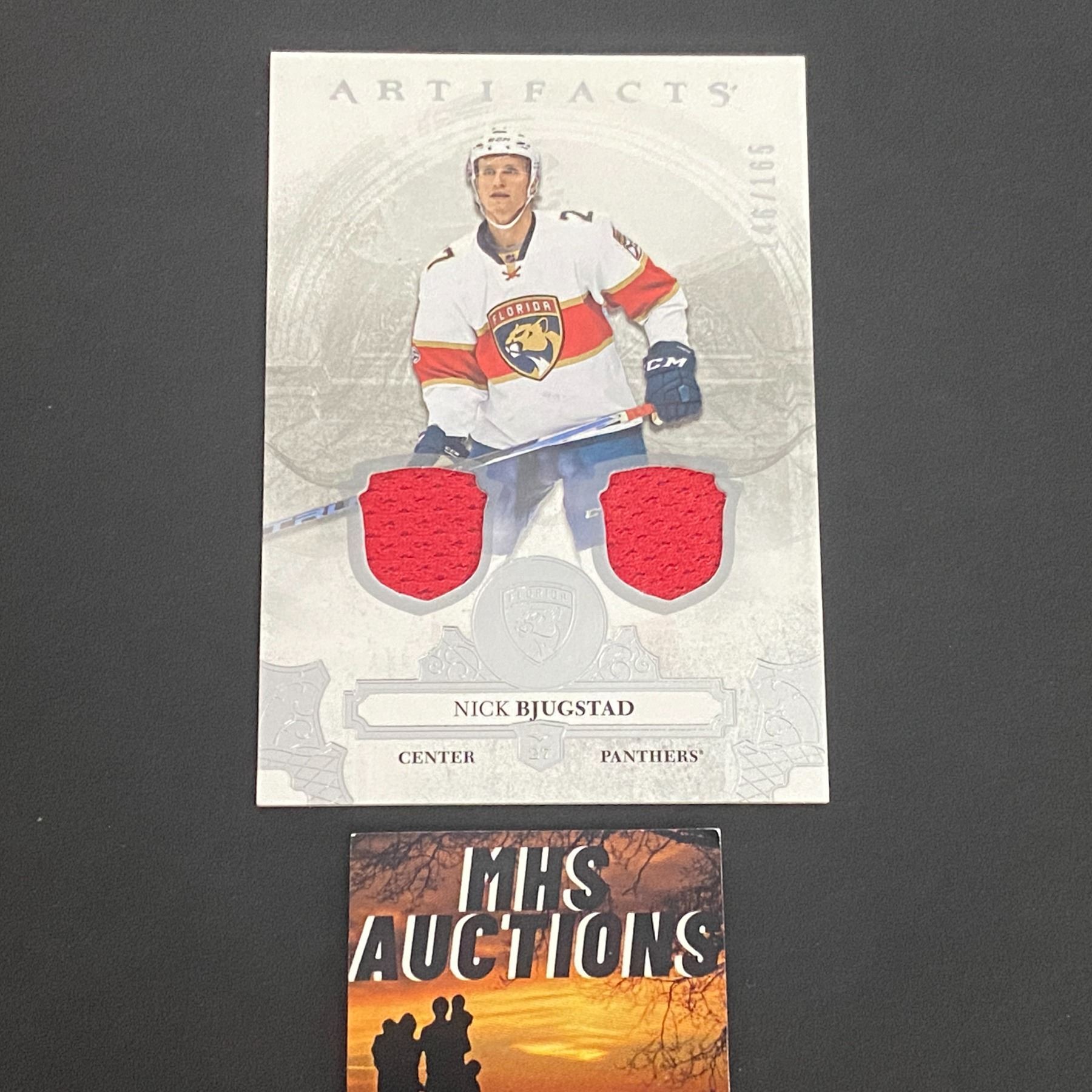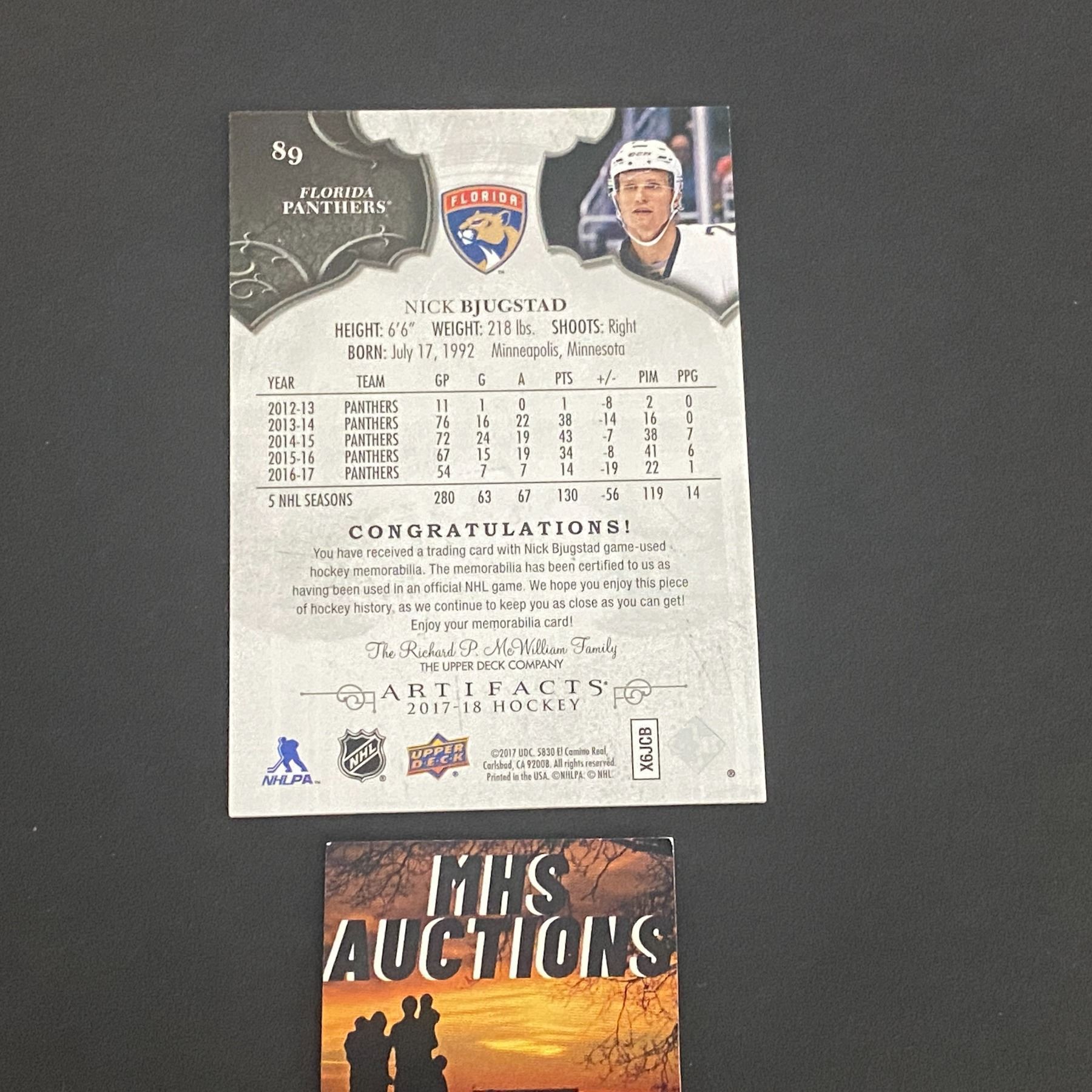 NICK BJUGSTAD DUAL JERSEY CARD 2017/18 U.D ARTIFACTS #146 OF 165 MADE