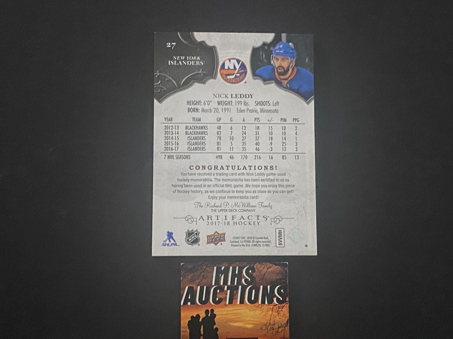 NICK LEDDY 2017-18 ARTIFACTS PATCH HOCKEY CARD