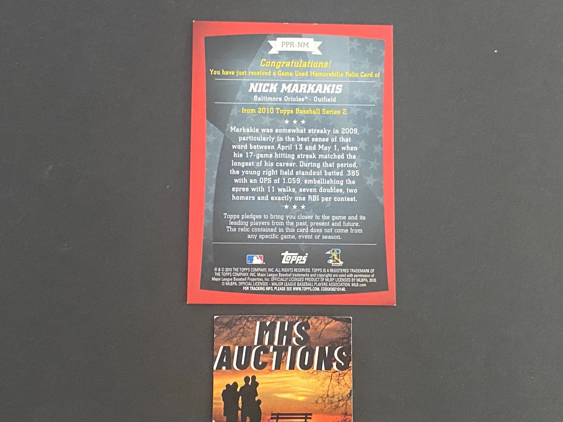 NICK MARKAKIS 2010 TOPPS BASEBALL JERSEY CARD