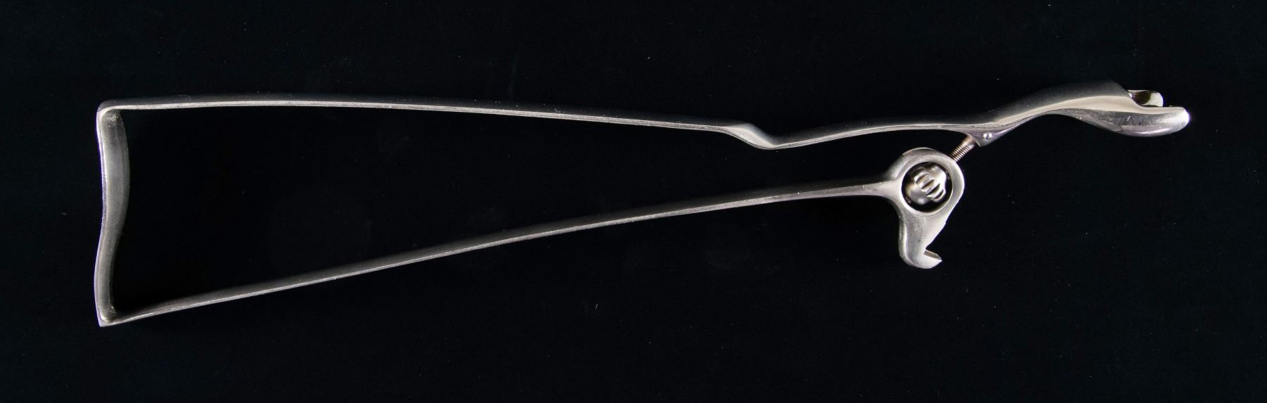 DETACHABLE SHOULDER STOCK. Nickel plated brass detachable shoulder stock made for use with the iconic Colt Single Action Army revolver. Stock is unmarked, with the mfg. and period of mfg. being unknown. Steel retention screw with finned tightening knob. CONDITION: very good, with the stock retaining virtually all of its nickel plated finish, showing some scattered dings, marks, and scratches from handling and storage. Tightening knob functions appropriately. (02-25096/MLW). $300-500.