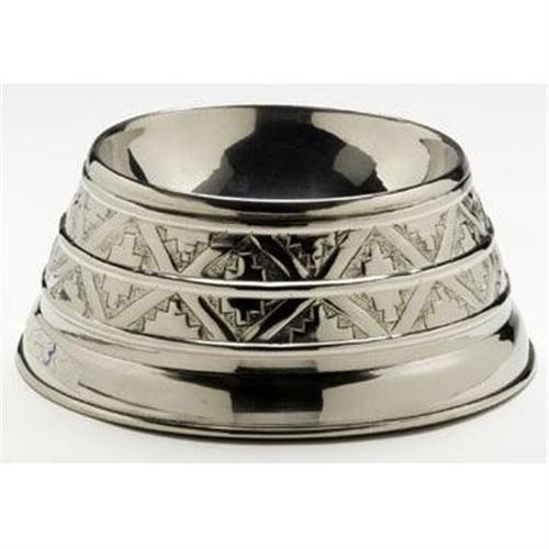 Brand new, NICKEL PLATED dog food bowl - Dimensions: 4"h, 8.5"diam