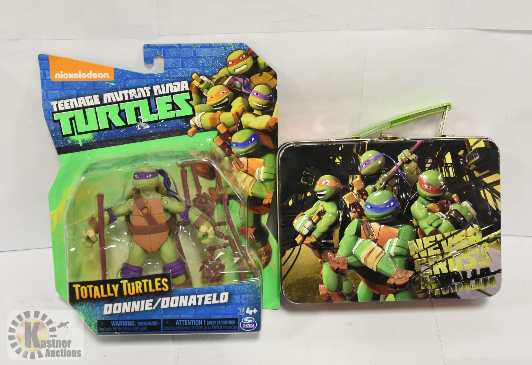 FIGURINE + NICKELODEON TEENAGE MUTANT NINJA TURTLES METAL LUNCH BOX