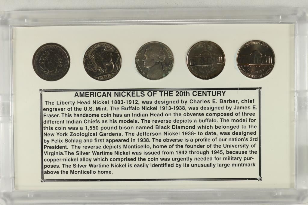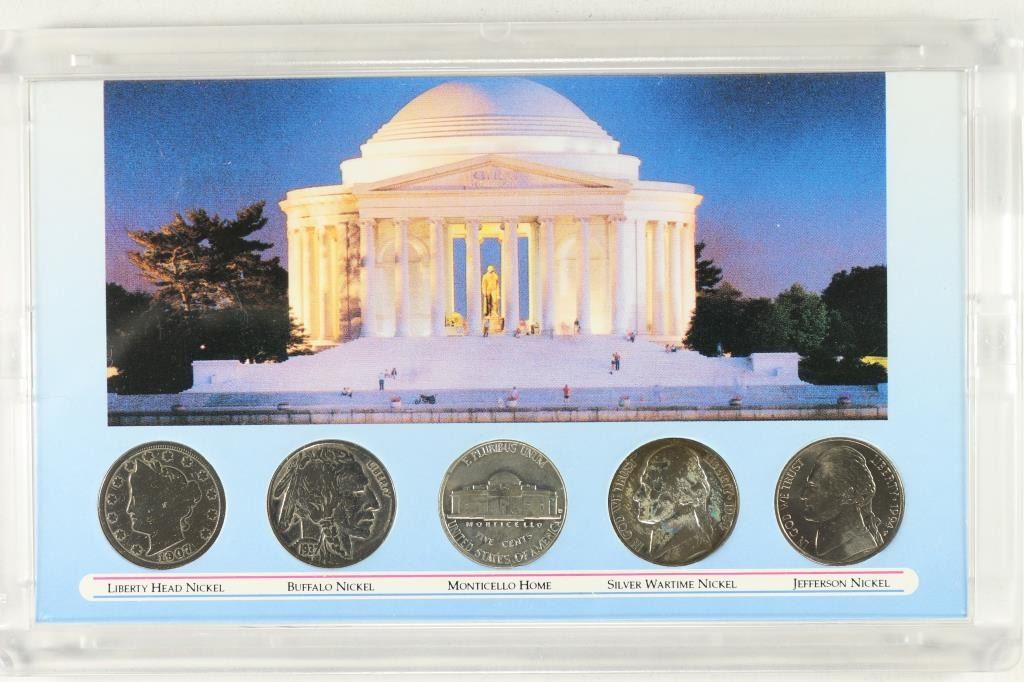 NICKEL, BUFFALO NICKEL, 35% SILVER JEFFERSON WAR NICKEL AND TWO OTHER JEFFERSON NICKELS