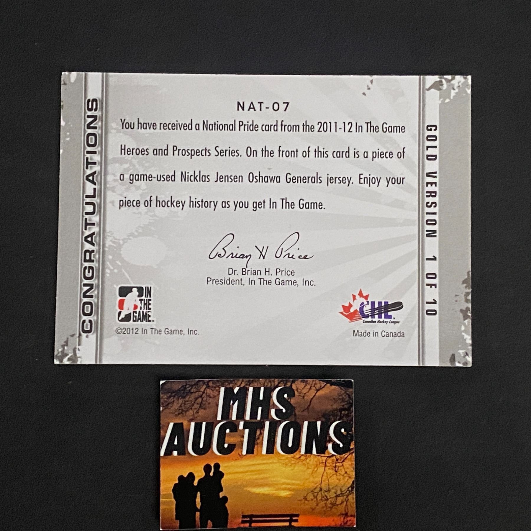 NICKLAS JENSEN 2012 IN THE GAME JERSEY CARD GOLD VERSION 1 OF 10