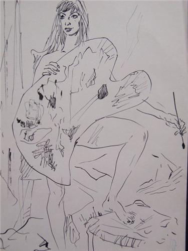 Additional information: The drawing is Stamped Signed in the lower right corner with the artist's initials "N.ST"