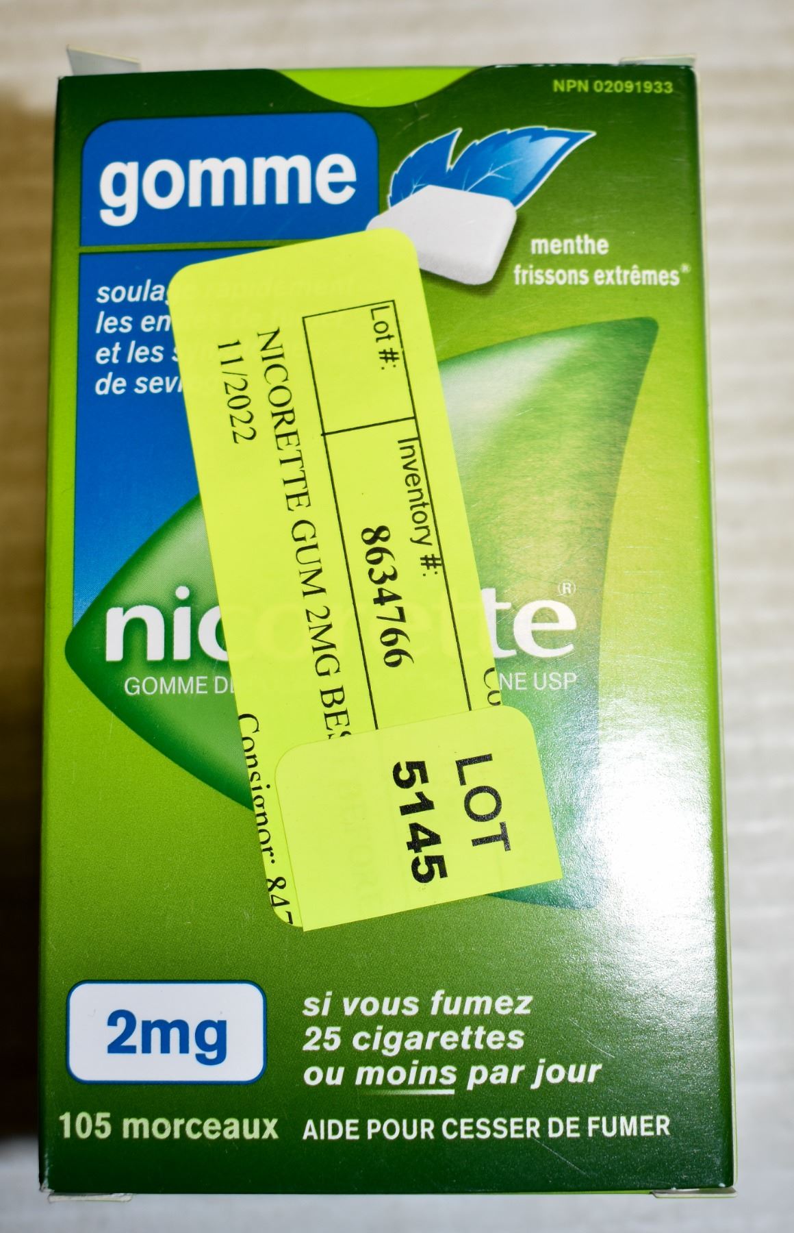 NICORETTE GUM 2MG BEST BEFORE 11/2022