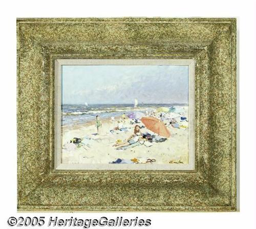 <B>NIEK VAN DEN PLAS (Dutch b. 1954)</B></I><BR>Beach Scene<BR>Oil on board<BR>9.75in. x 12in.<BR>Signed lower right<BR><BR>Condition Report: Overall excellent condition<BR>