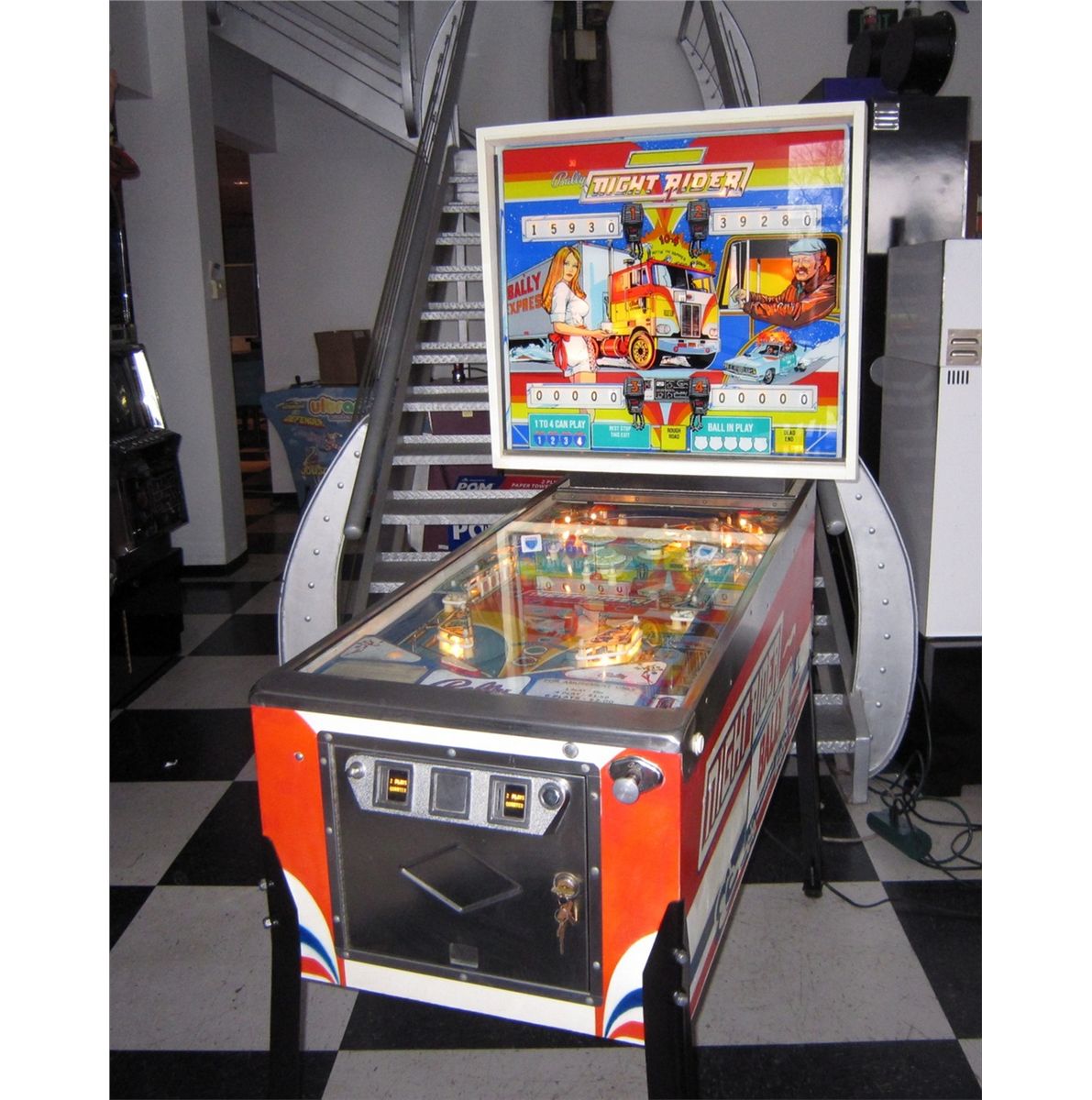 This hard to find classic pinball is from Bally with a trucker theme. This game is in good condition from the cabinet to the playfield. It plays great and has been shopped with the playfield cleaned and polished. Worn rubber and burnt bulbs changed and all functions checked for proper operation by a pinball technician.