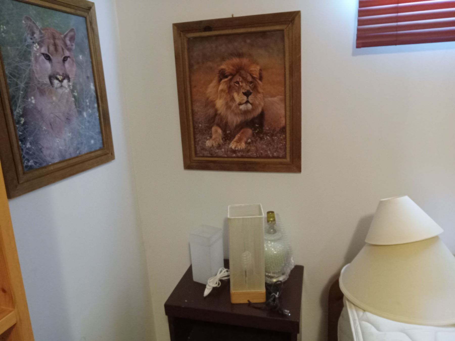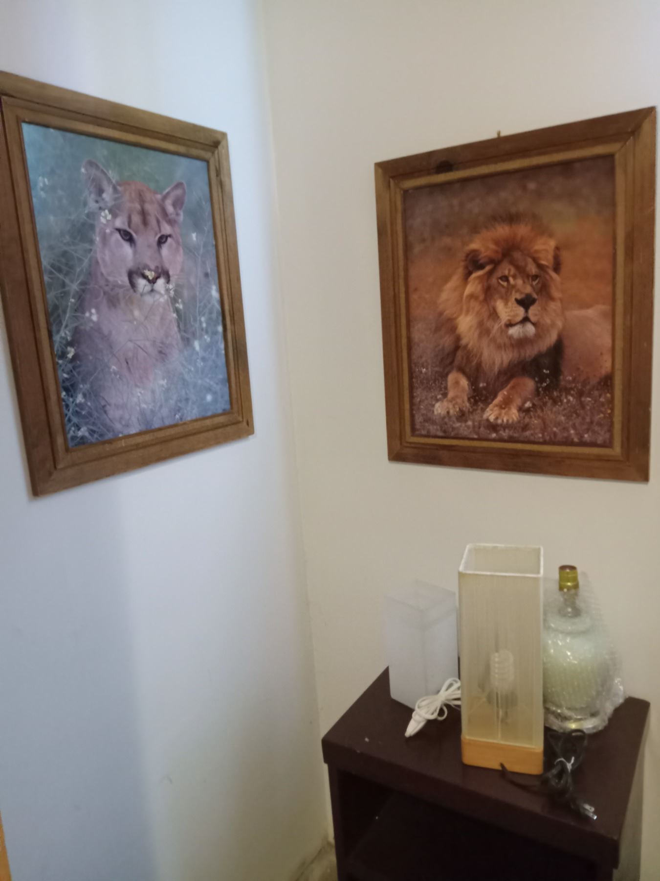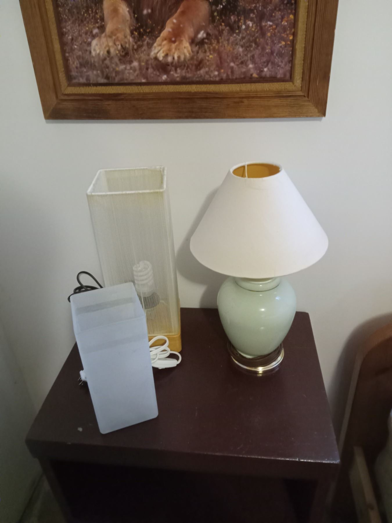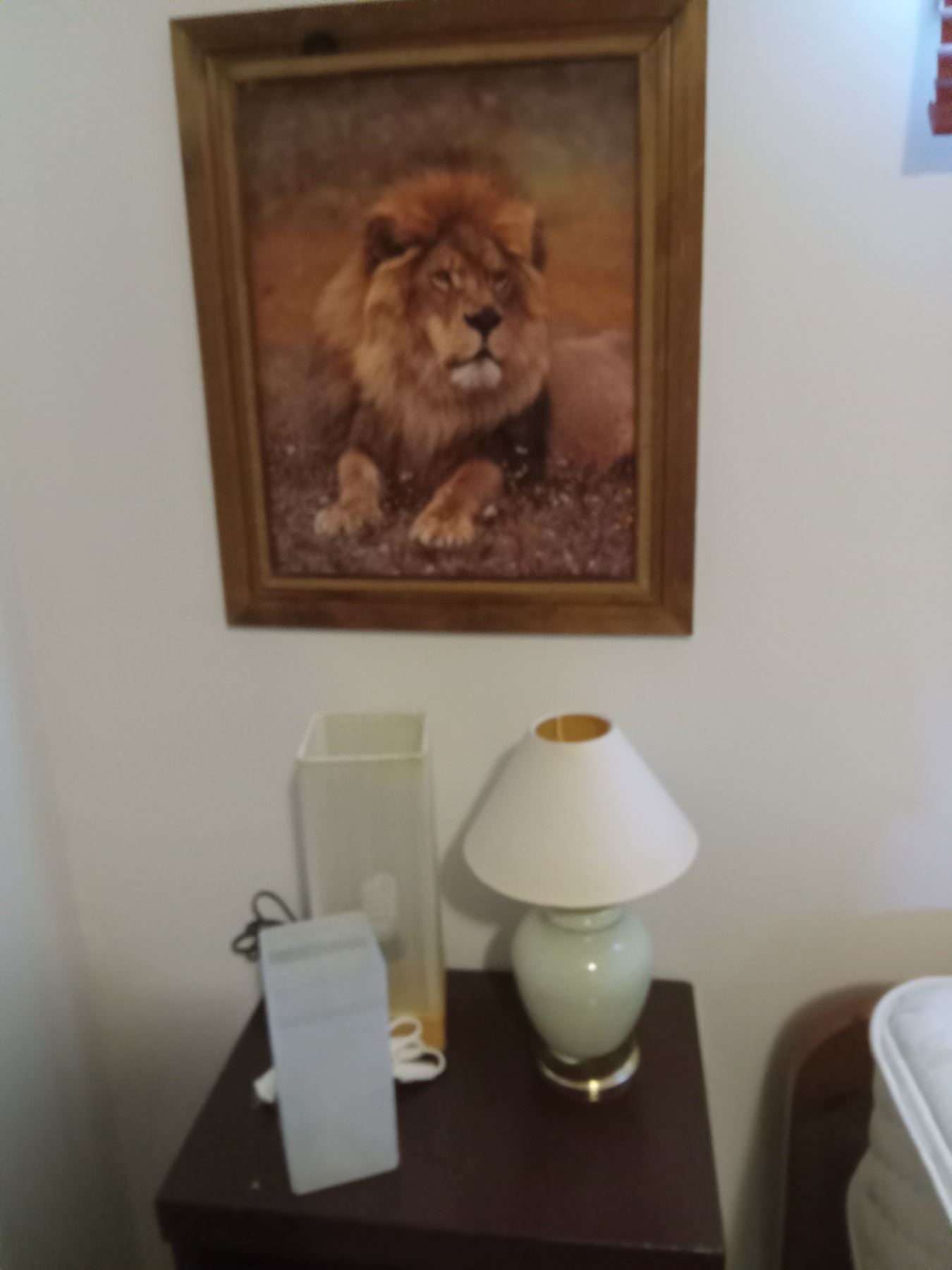 NIGHT STAND/END TABLE; LAMPS & PICTURES