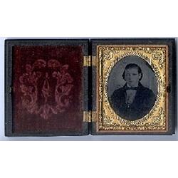 1/9 plate ambrotype on violet glass. Case appears flawless.