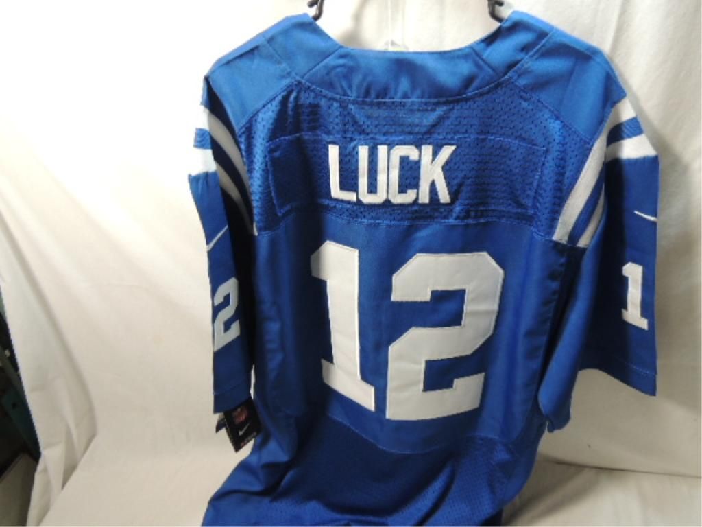 NIKE ON FIELD INDIANAPOLIS COLTS JERSEY #12 ANDREW LUCK. NEW WITH TAGS. SIZE. 52 AS SHOWN. SEE PHOTO FOR MORE DETAILS.