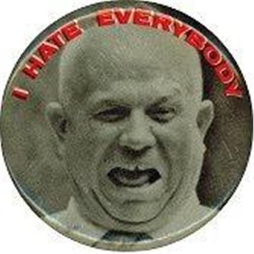 <tr><td><font size="2" face="Arial, Helvetica, sans-serif"><strong><font color="#000033">Title:</font></strong>NIKITA KHRUSCHEV PIN ~ I HATE EVERYBODY PINBACK</font></td></tr>