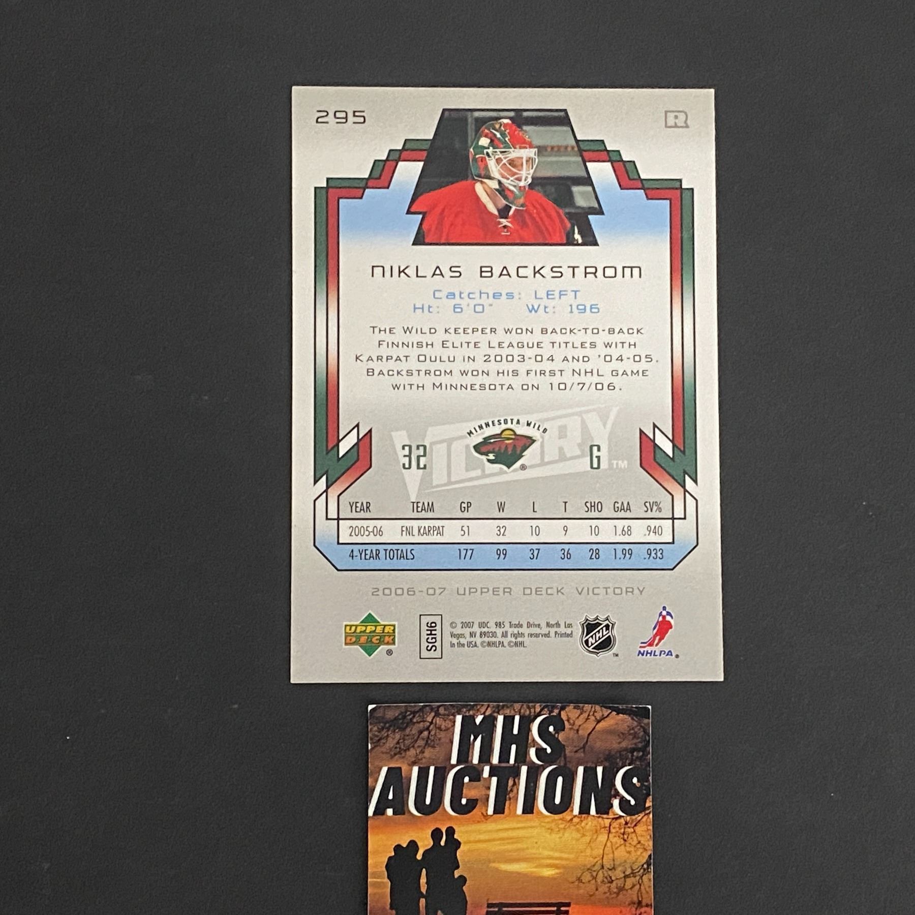 NIKLAS BACKSTROM 2006-07 U.D VICTORY ROOKIE HOCKEY CARD
