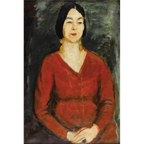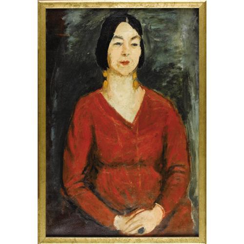 <B>NIKOLAI IVANOVITCH VASIL'EV</B></I> (Russian-American 1892-1970)<BR><I>Portrait Of A Woman In Red,</B></I> circa 1930<BR>Oil on canvas<BR>36 x 24 inches (91.4 x 61 cm)<BR>Unsigned<BR><BR> <B>Condition Report:</B> original, unlined canvas<BR><BR><b>Shipping:</b> Requires 3rd Party Shipping (<a target="_blank" href="http://www.heritageauctions.com/common/shipping.php">view shipping information</a>)