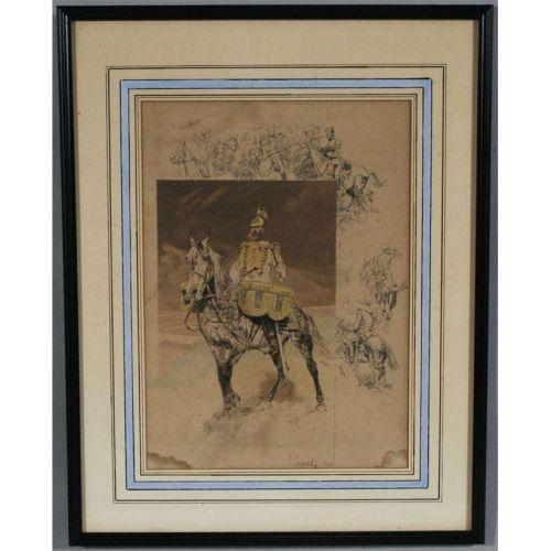 1 NIKOLAI SEMYONOVICH SAMOKISH Russian Officer on Horseback 16"x 11" lithograph CONDITION REPORT: stains and toning.