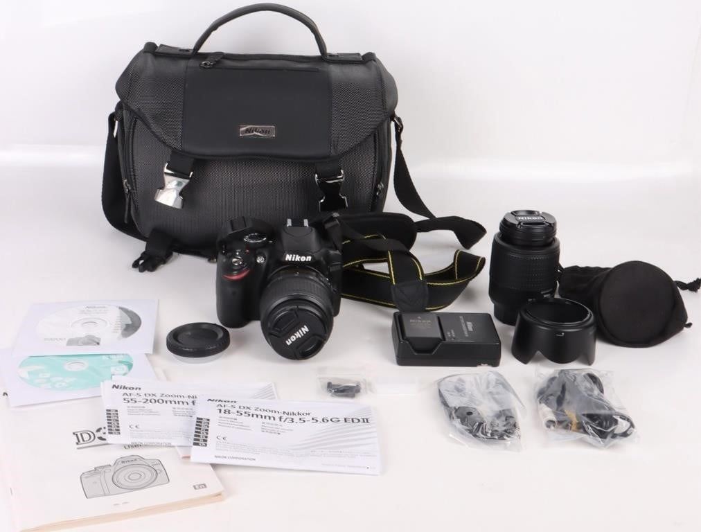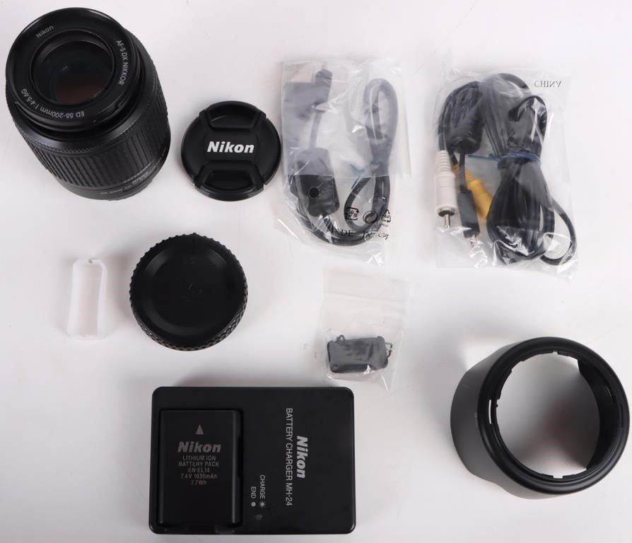 Nikon D3200 camera w/ all accessories & camera bag to include the D3200 Nikon Camera, one battery and charger, CASR, and a 55-200 zoom lens.