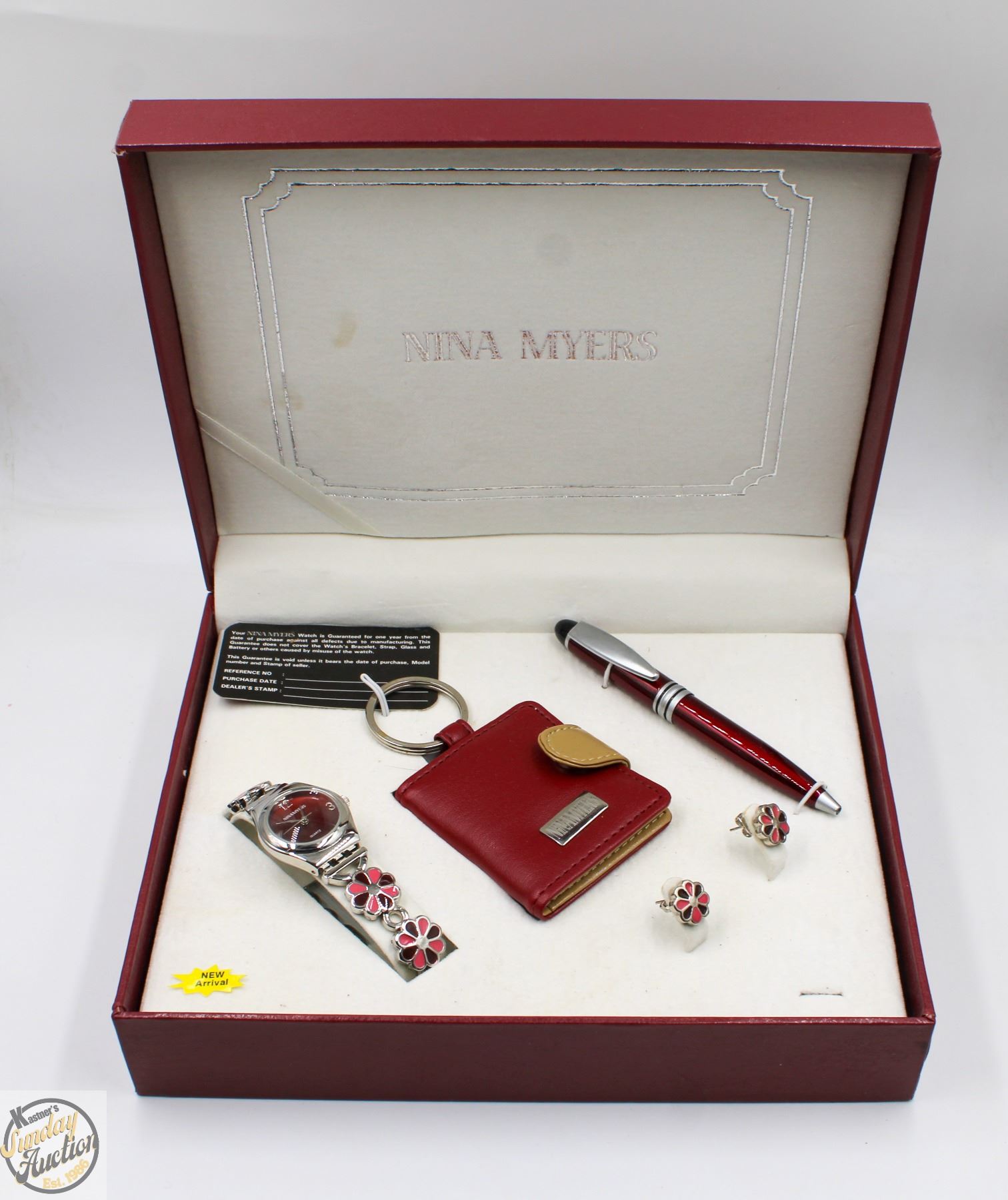 NINA MYERS LADIES WATCH, WALLET, EARRINGS PEN SET