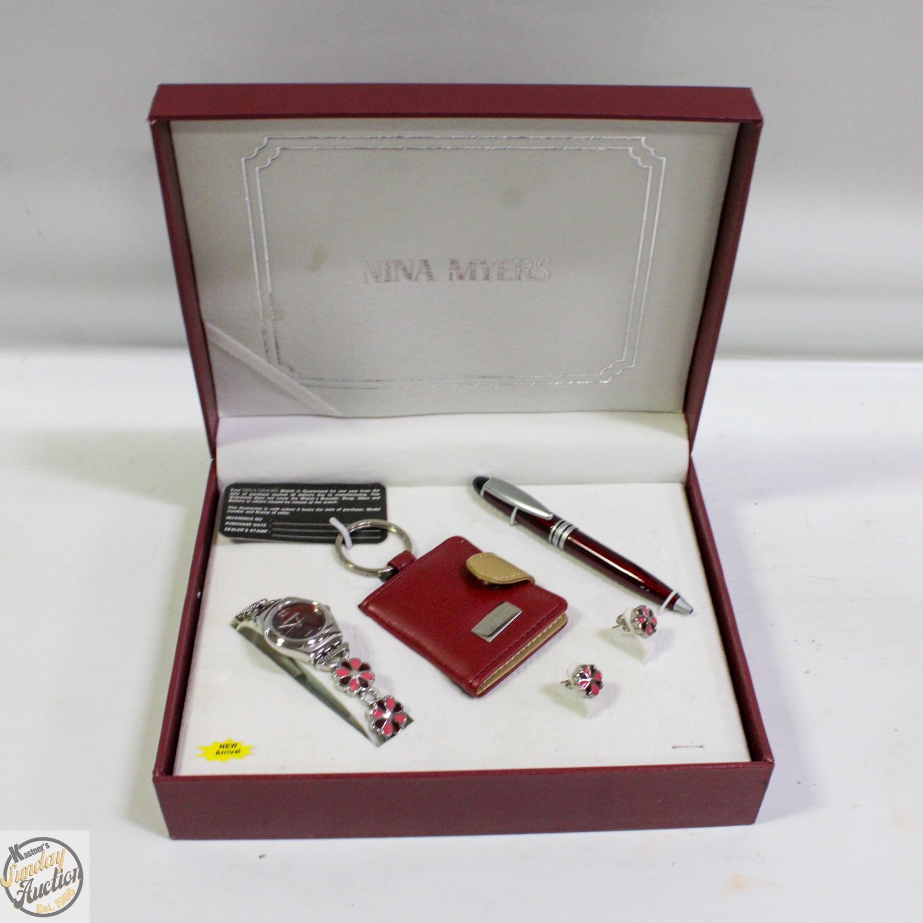 NINA MYERS LADIES WATCH, WALLET, EARRINGS PEN SET