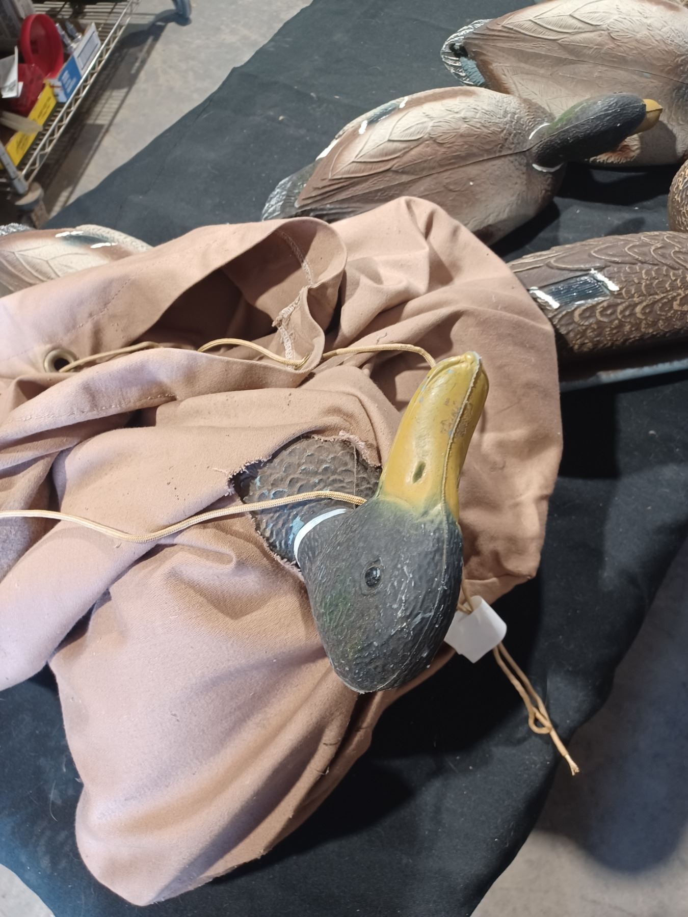 NINE FLOATING MALLARD DECOYS - FOUR DRAKES AND FIVE HENS IN A BAG