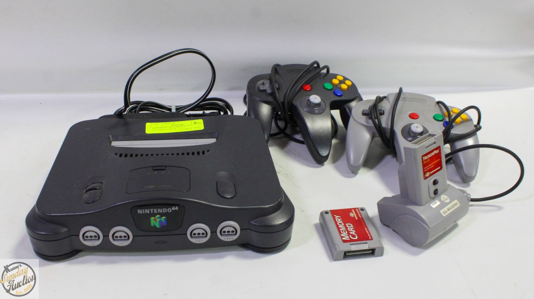 NINTENDO 64 CONSOLE, 2 CONTROLLERS &