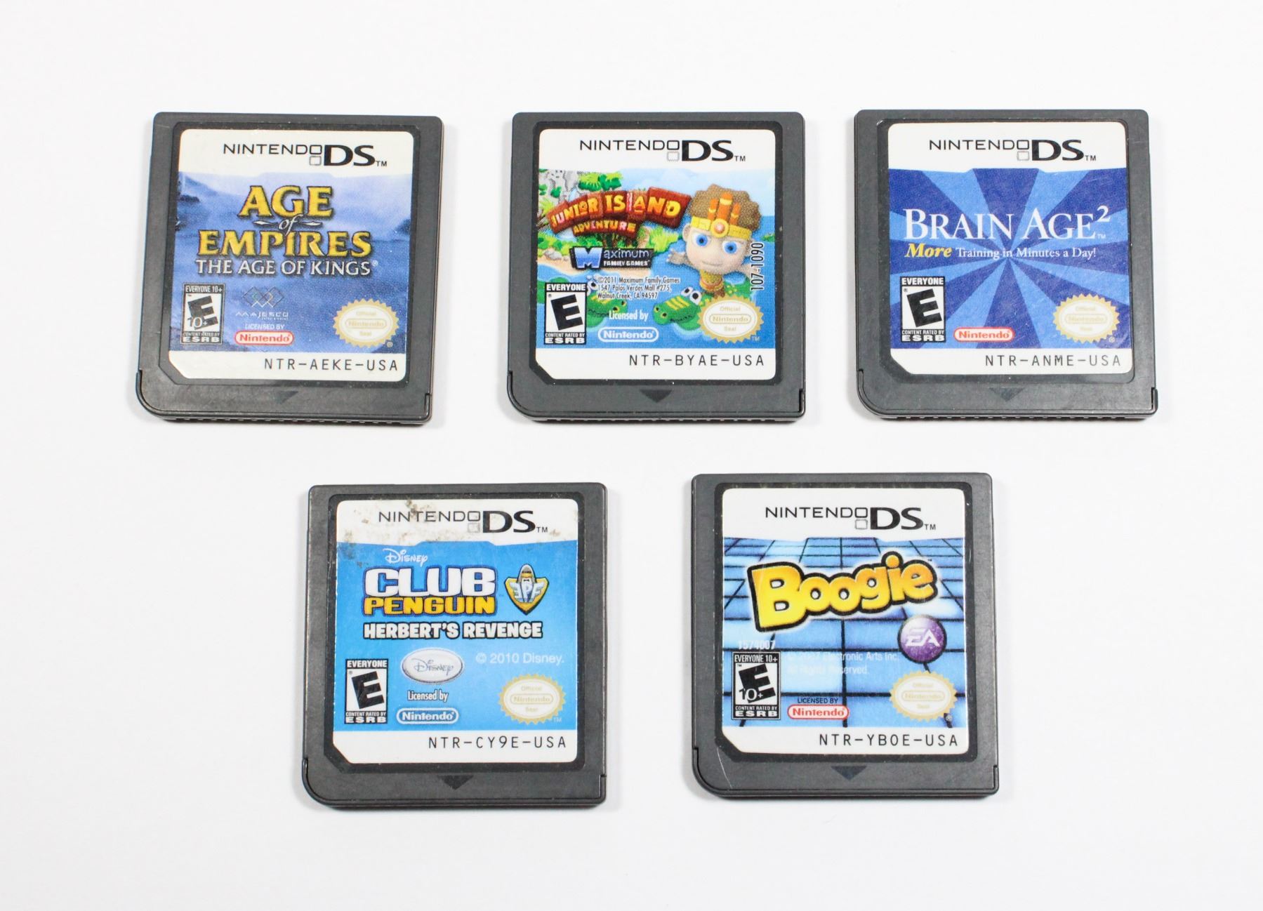 OF KINGS, CLUB PENGUIN HERBERT'S REVENGE, JUNIOR ISLAND ADVENTURE, BRAIN AGE 2, AND BOOGIE