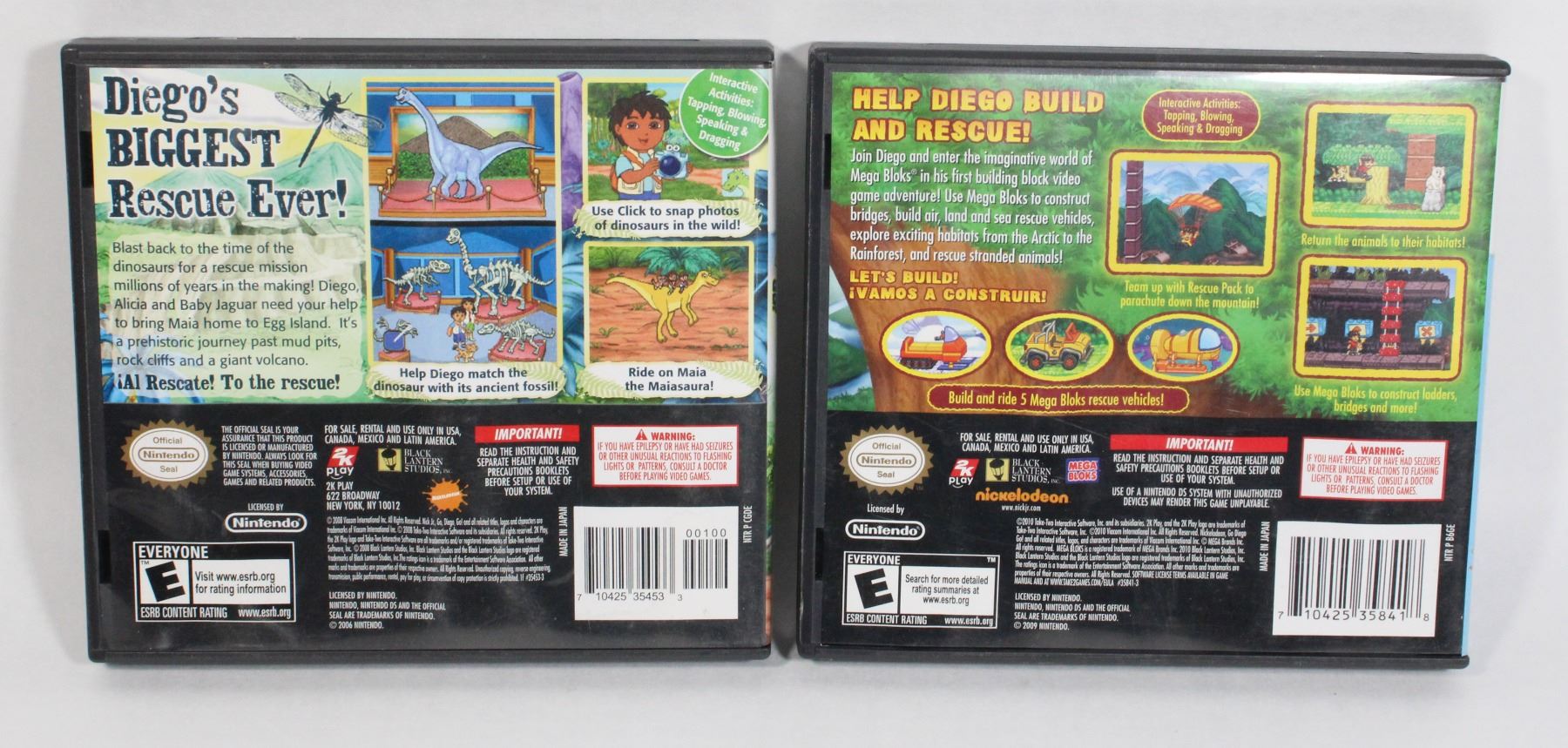 DINOSAUR RESCUE, AND MEGA BLOKS DIEGO'S BUILD AND RESCUE GAMES. BOTH ARE COMPLETE IN BOX. CIB