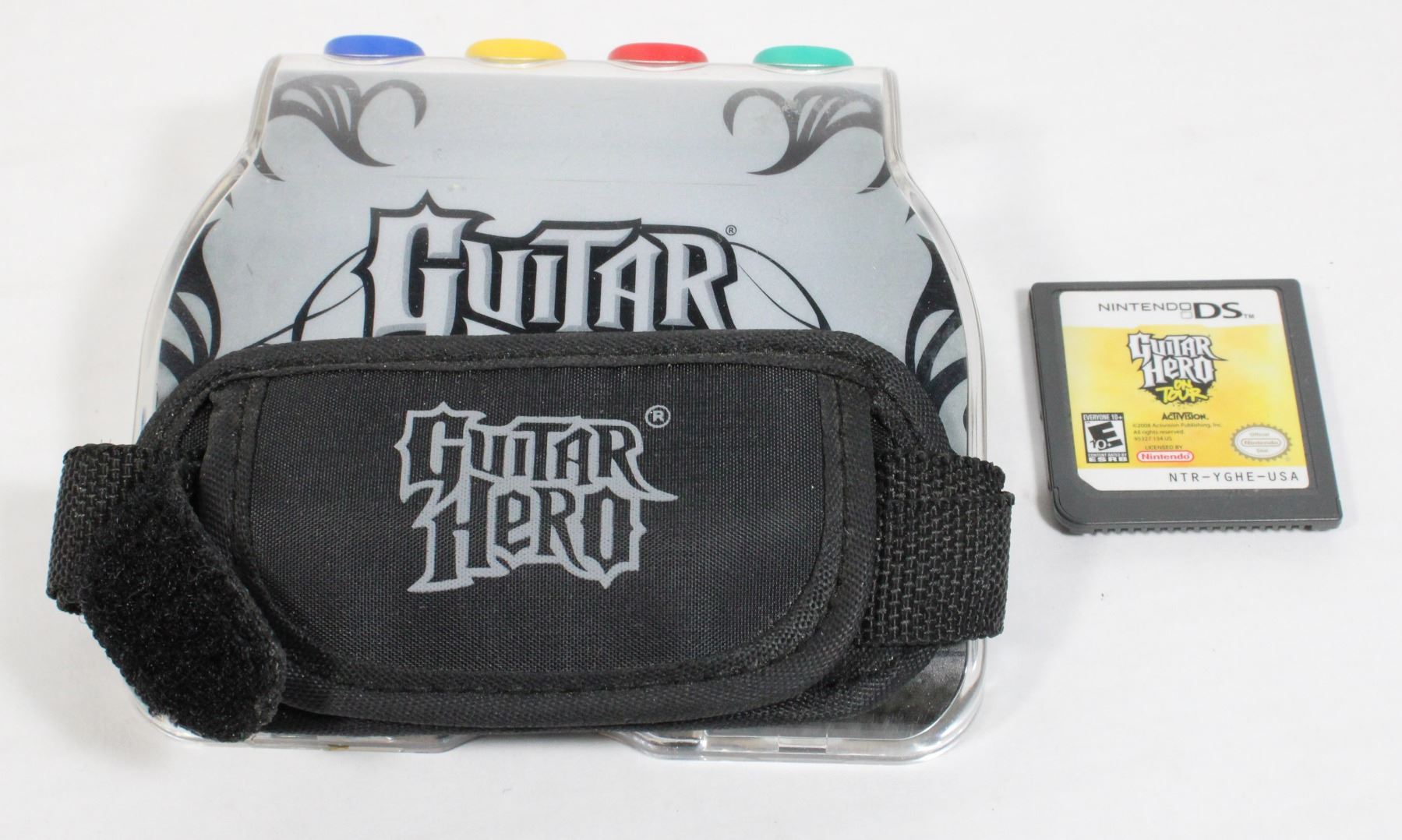 CONSOLE IS IN EXCELLENT CONDITION COMES WITH GUITAR HERO FINGRT GUITAR, GAME, CHARGER, STYLUS AND SPECIAL GUITAR HERO CASE