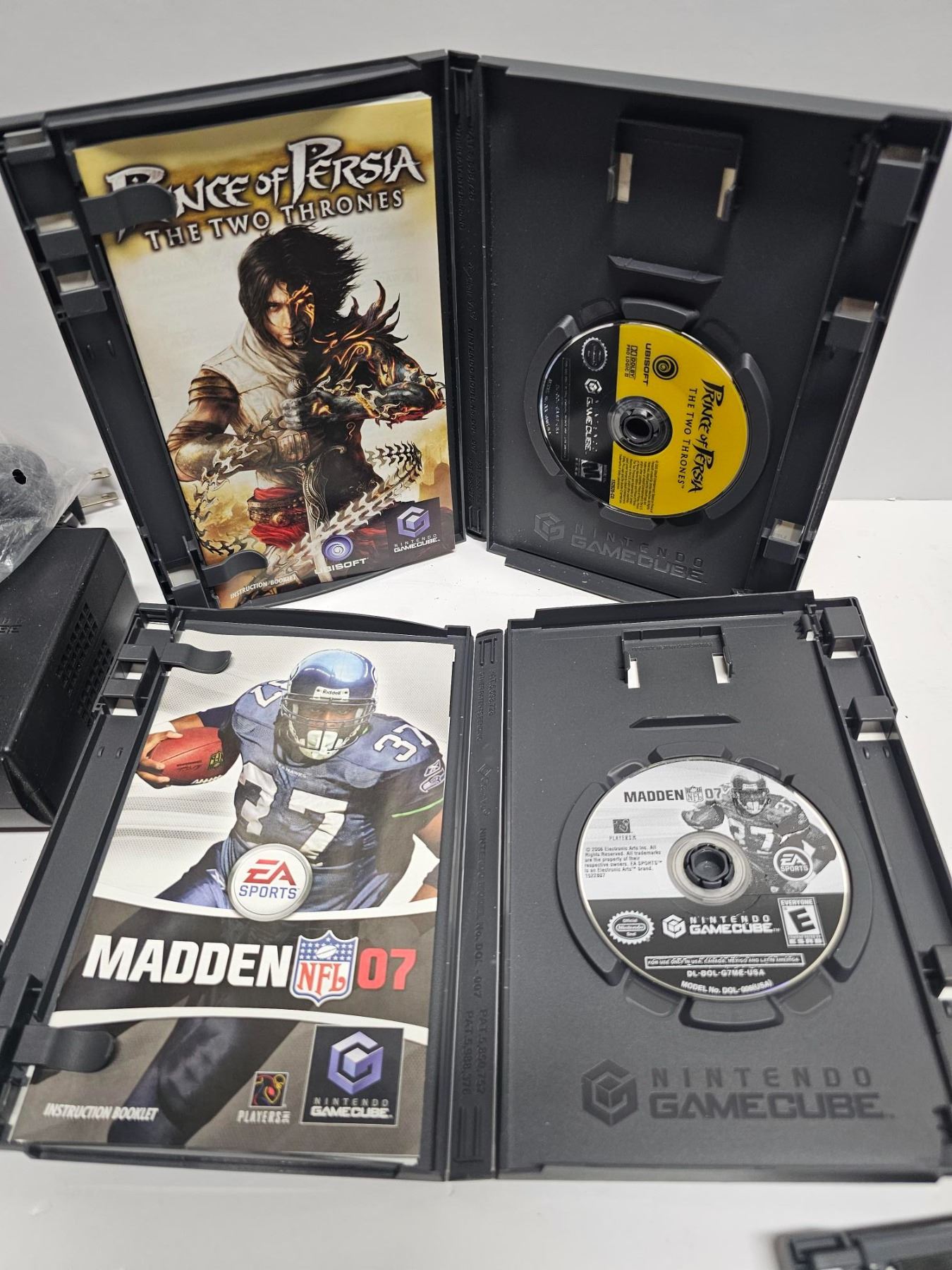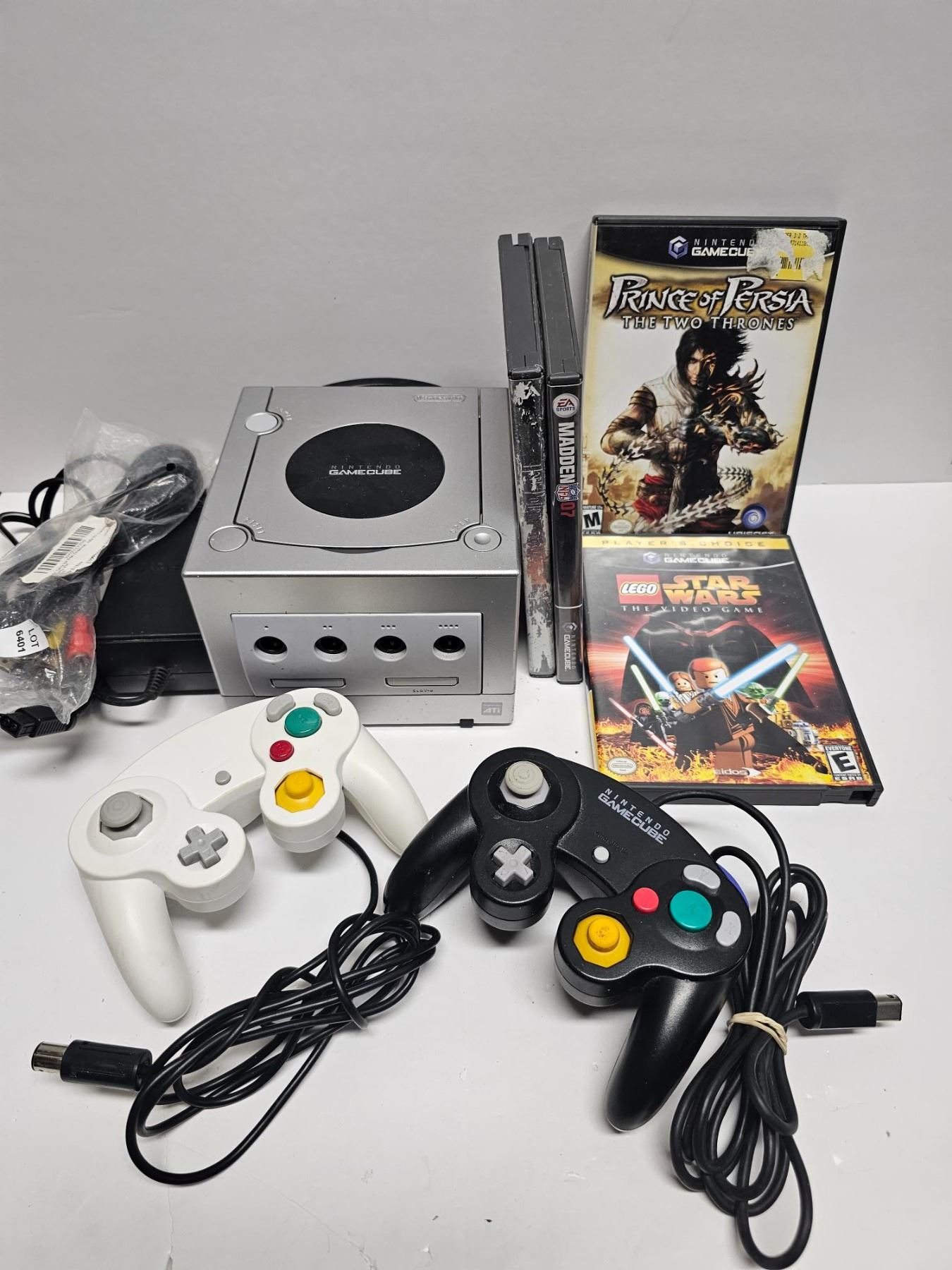 INCLUDING HOOKUPS, 3RD PARTY CONTOLLER, 4 GAMES INCLUDING PRINCE OF PERSIA THE TWO THRONES, LEGO STAR WARS, ECT. ALL IN GOOD TO VERY GOOD CONDITION EXCEPT COVER ART FOR HARRY POTTER GAME