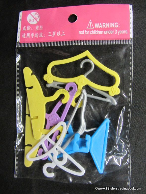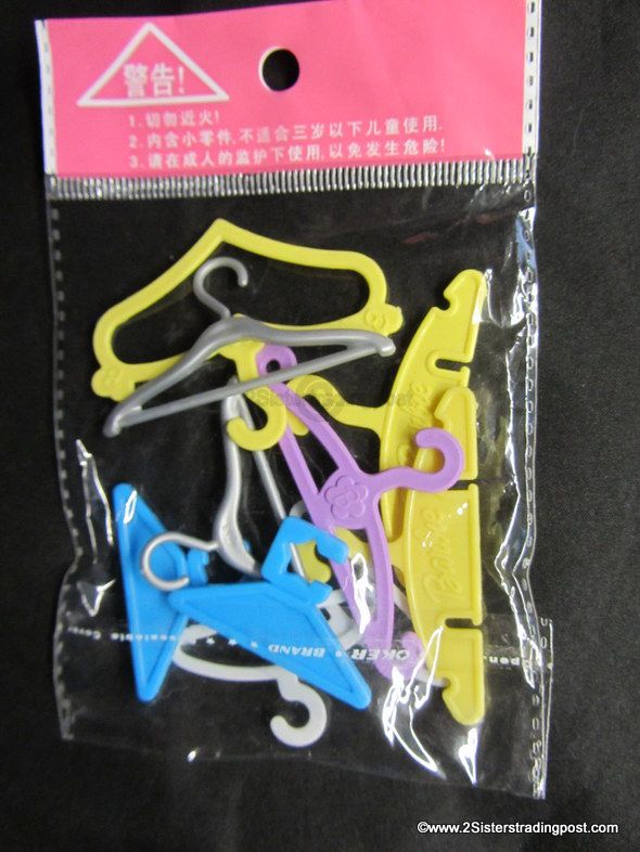 10 Oker Brand Barbie hangers 6 different styles multi colored 1 yellow heart shaped, 1 purple