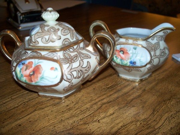 NIPPON CREAM AND SUGAR W/POPPIES