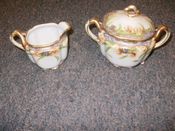 NIPPON CREAM AND SUGAR W/WHITE ROSES AND GOLD TRIM