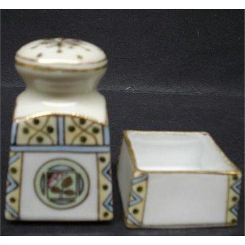 GORGEOUS PAIR OF OPEN SALT DISH AND PEPPER SHAKER, HAND DECORATED ,EXCELLENT CONDITION, BUT ON ONE SIDE OF A SHAKER THERE IS A TINY SCRATCH OR HAIRLINE, SHAKER STANDS ABOUT 3" HIGH AND OPEN SALT DISH 1 1/4" HIGH AND 2" IN SQUARE, US BUYER TO PAY 8.00 FOR SHIPPING PLUS INSURANCE.THANKS.