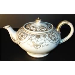 NIPPON GOLD JEWELED TEAPOT. Marked on bottom “Hand Painted-Nippon”. Loss of gilt and wear to handle. Good overall condition. 4.5” H