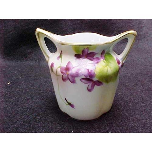BEAUTIFUL HAND PAINTED NIPPON TWO HANDLED TOOTHPICK HOLDER. THERE IS A SPRAY OF VIOLETS ON THE FRONT AND SINGLE VIOLET WITH LEAVES ON THE BACK. THE TOP AND SIDES OF THE HANDLES ARE TRIMMED WITH GOLD. THIS IS IN PERFECT CONDITION. MEASURES 2 1/2 " TALL.