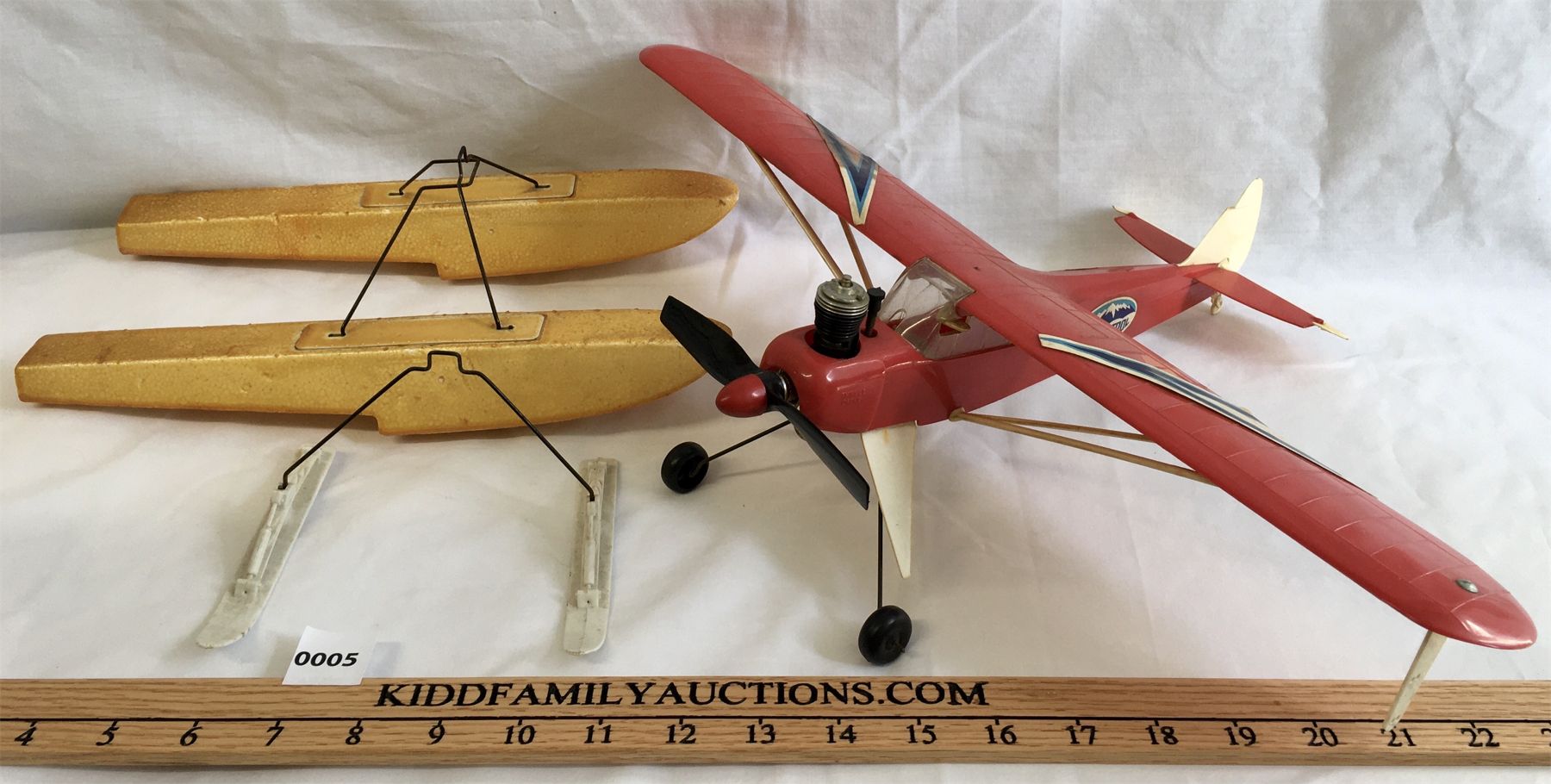 NOTE: 17.5in WINGSPAN. INCL INTERCHANGABLE FLOATS, SKIS AND WHEEL LANDING GEAR