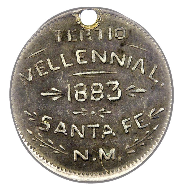 Obverse: Tertio / Mellenial / 1883 / Sante Fe / NM. Silver 15mm/ Commemorative Medalet. Very good condition.