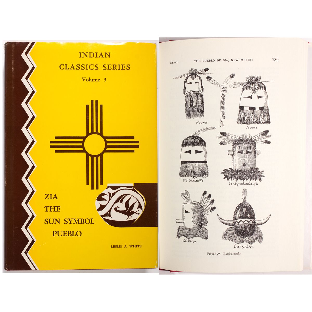 1974 reprint of the Smithsonian Institution's Bulletin 184: The Pueblo of Sia, New Mexico, by Leslie A. White. The bulletin was initially published in 1962. With graphs, charts, photographic plates, and one fold out map of the Sia Pueblo. White was a champion of the concept of cultural evolution (the belief that as humans adapt to stimuli, their culture becomes more complex [britannica.com]. With his beliefs in and association to socialism, White furthered his negative public opinion [nndb.com]. Hardbound in red cloth with jacket. 358 pp. 6" x 9." - Vinegar Collection