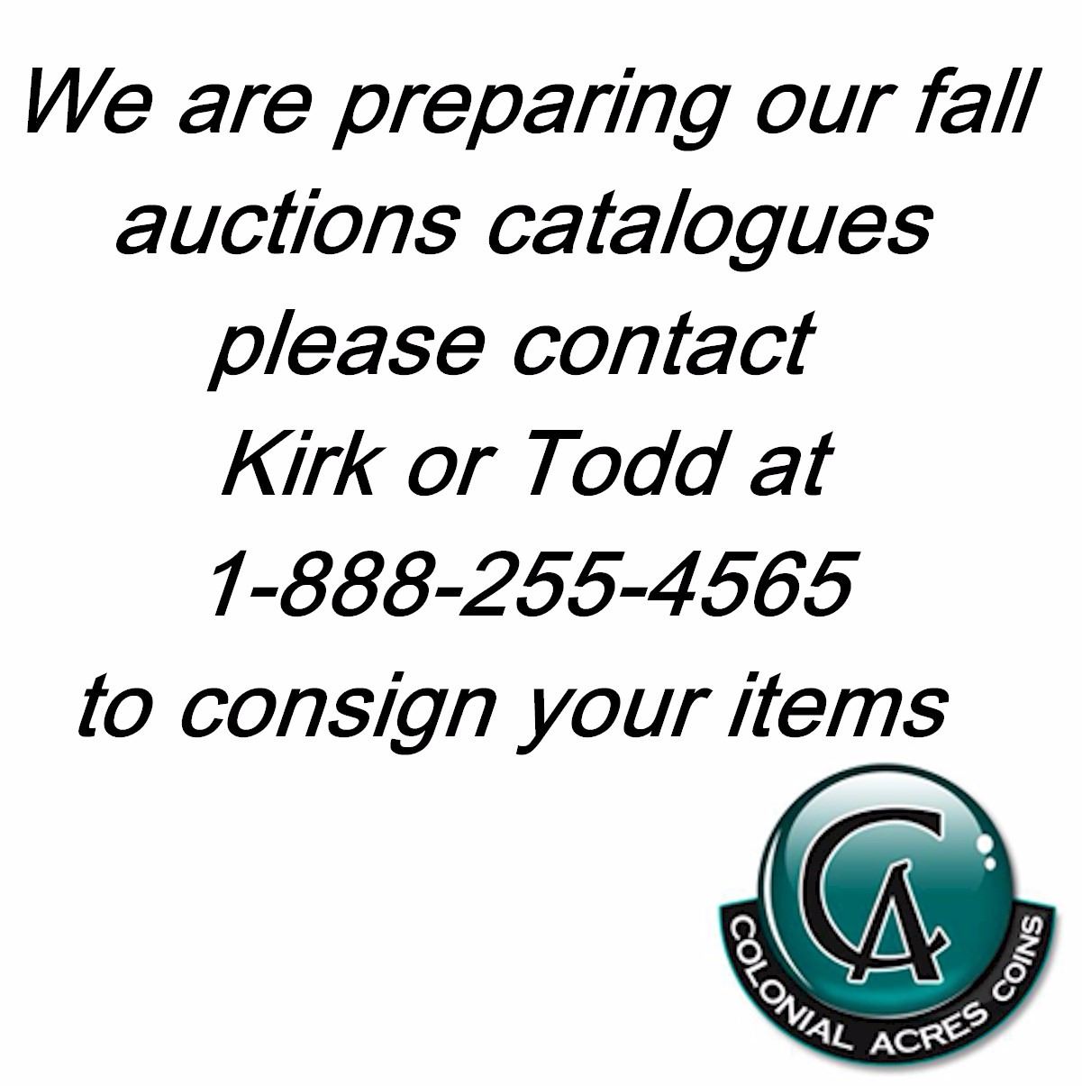 Auction Location: Colonial Acres Coins, 991 Victoria St. North, Kitchener, Ontario.