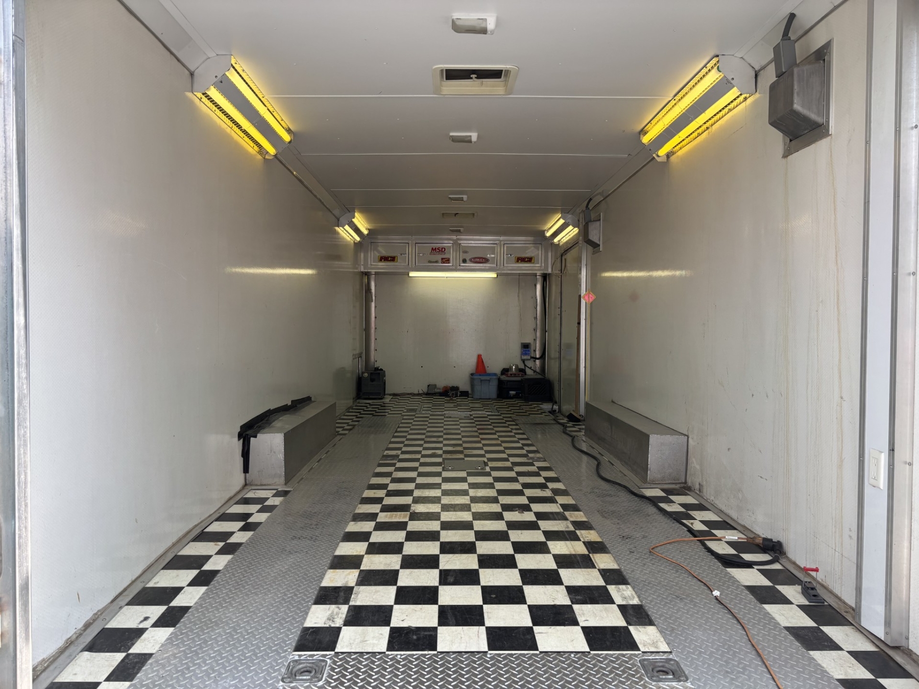 Fluorescent lights on inside of trailer