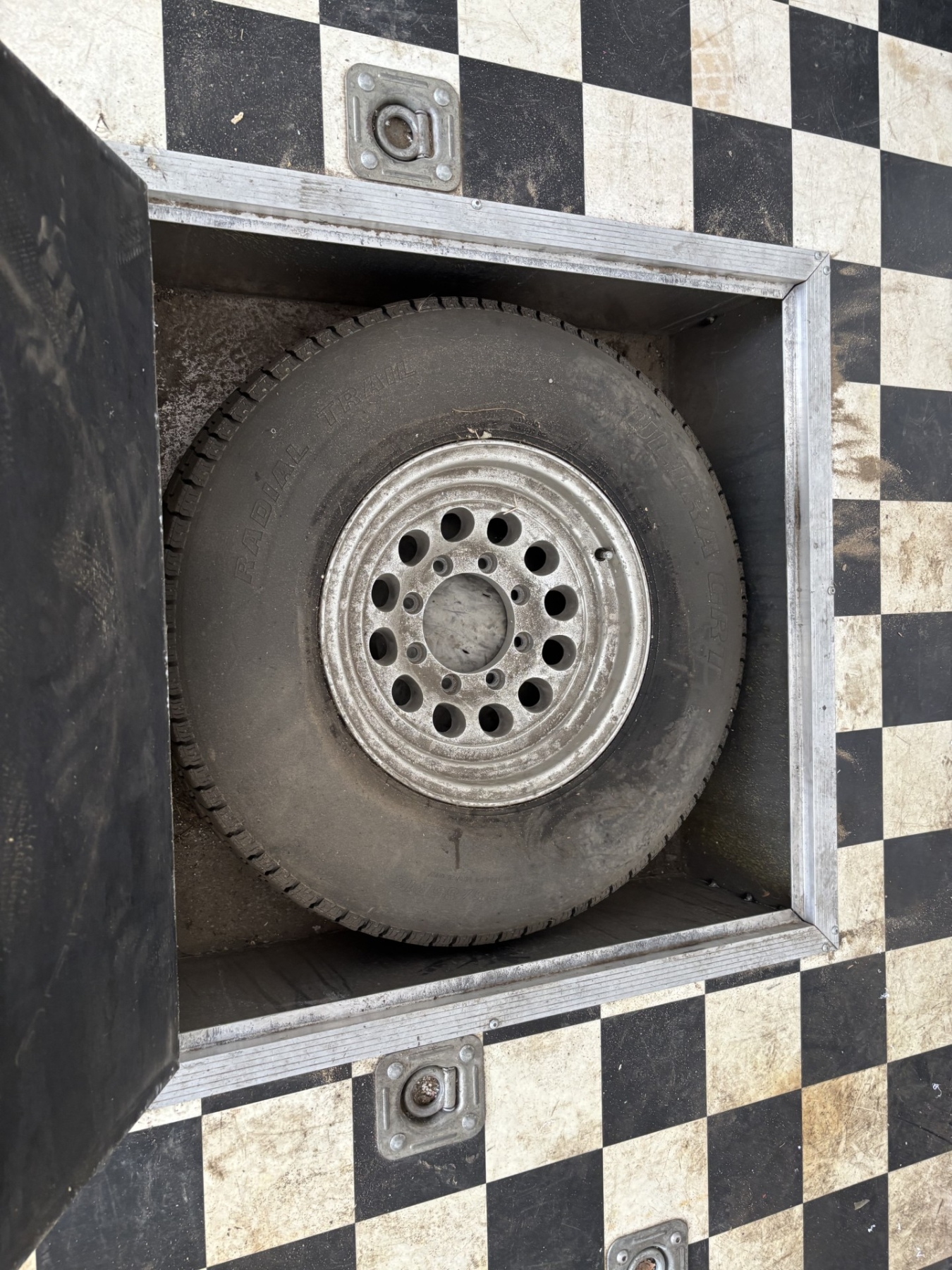 Spare tire stored in trailer well