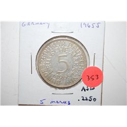 1965-F German 5 Deutsche Mark Foreign Coin; .2250 ASW; EST. $20-30