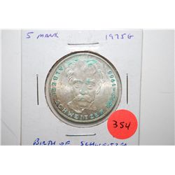 1975-G German 5 Deutsche Mark Foreign Coin; Birth Of Schweitzer; .2250 ASW; EST. $5-10