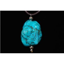 Brown Leather Necklace With Large Turquoise Charm; EST. $20-30