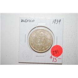 1939 Mexico 50 Centavos Foreign Coin; .1929 ASW 0.720 Ley; EST. $10-20